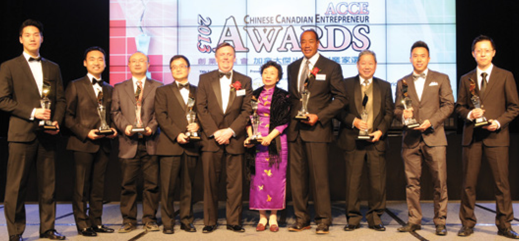 创业协进会主办的第13届杰出华裔创业家选举颁奖礼4月4日在万锦市希尔顿酒店举行,出席颁奖礼人士来自政商社界近800人,包括来自卑诗省的国会议员黄陈小萍代表总理哈珀致欢迎词,参议员利德蕙、联邦财政部长费拉逖、联邦工业部长甘礼民、安省小型商业及消费服务厅长塔卡、安省公民及移民厅长陈国治、万锦市长薛家平、中国驻多伦多总领事朱桃英,及香港经济贸易办事处处长萧慕莲等。