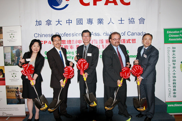 安省旅游及文化厅长陈国治、安省延龄草基金会理事兼社区资本基金主席Devkumar Sainani博士出席了CPAC职业服务中心加建设施的动工仪式。陈国治厅长代表省政府对所有获拨款的非营利机构在帮助政府为多元人口提供文化服务方面做出的杰出贡。