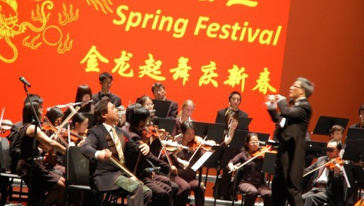 由多伦多华人艺术家中心主办的新年系列演出之一的《金龙起舞庆新春》文艺晚会1月15日晚在Richmond Hill歌剧院举行。晚会的开场节目是杨洋舞蹈工作室表演的迎新春舞蹈《舞动中华》,《佤族舞蹈–黑濮》;胡晓萍“小平合唱团”女声小组唱《小路》《好人好梦》《常回家看看》;青年扬琴演奏家王莉领衔的“民乐小合奏”和《金蛇狂舞》;小提琴,大提琴,钢琴三重奏合唱《梁祝》;庞志雄,黄佩珍管弦乐队伴奏的《新木兰辞》;林义小提琴独奏电影《辛德勒名单主题曲》;伊雪演唱的《小村之恋》《春风吻上我的脸》;晚会的押轴戏是陈国产《珠江之恋》和广东音乐《旱天雷》。