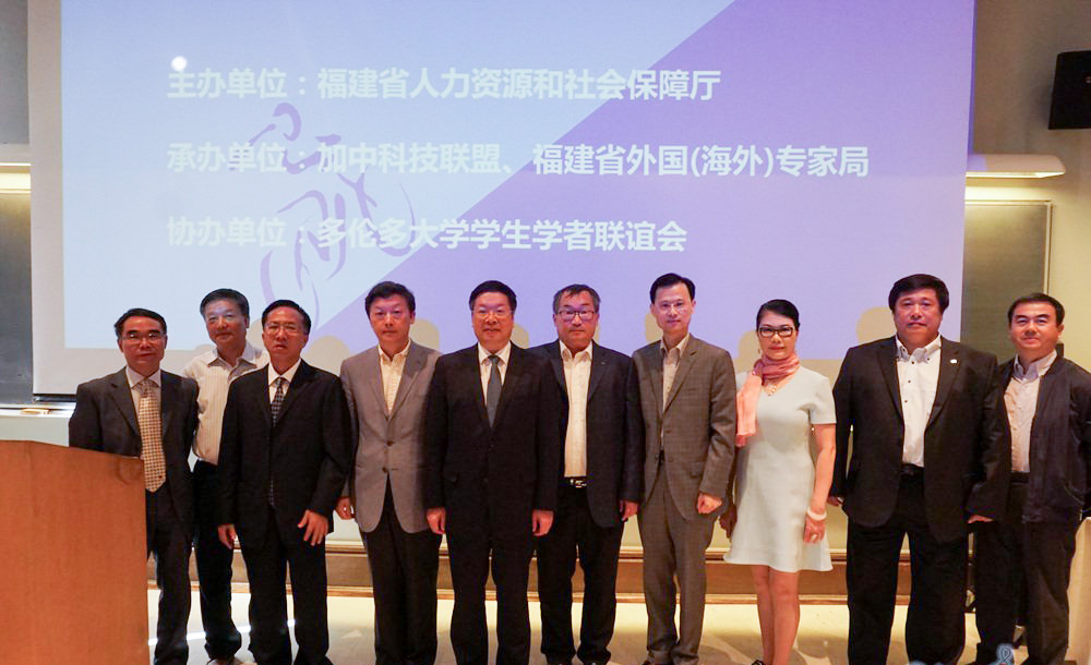 9月14日,由福建省人力资源和社会保障厅副厅长王强为团长,省海外专家局副局长陈国华、省人力资源和社会保障厅调研员黄仲熙、福建商学院副院长康文杰、福建师范大学人事处处长林国庆、新大陆科技集团副总裁陈健组成的海外高级人才招聘团,与加中科技联盟共同携手,在多伦多大学学生学者联谊会协助下在学术历史悠久、举世闻名的多伦多大学成功举办了福建省人才与项目(多伦多)对接合作会。近80多名事先经过登记预选的留加高级人才出席了对接会。