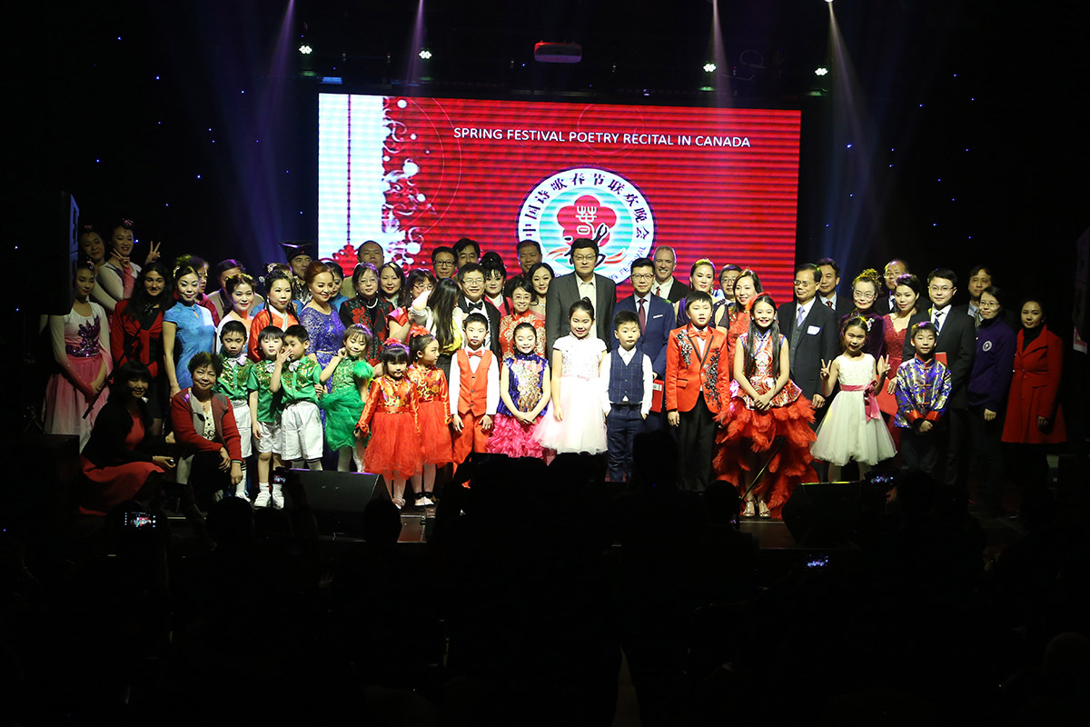 由中加国际文化艺术交流中心和中加国际文化艺术家联合会联合主办的中国诗歌加拿大春晚,在新动力演播厅拉开序幕,来自中加两国的文艺界、教育界、工商界以及大多地区、渥太华的华人社团、大学校友会、大学教授、作家、诗人,艺术家、文学艺术爱好者、各级政府机关工作人员、西人社区代表等200余贵宾朋友,参加了此次盛大的活动。
