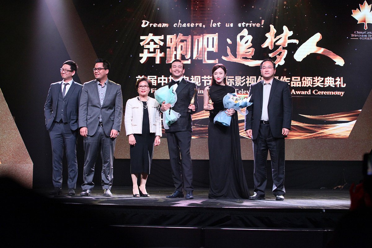 25日在The Westin Harbour Castle举办的电视节颁奖典礼上,特邀评委们分别评选出本次电视节的国际影视传播作品奖,最佳栏目奖,最佳纪录片奖,最佳微电影奖,最佳网剧奖,最佳男女主角奖等,并为获奖嘉宾颁发奖杯。其中,杨烁与秦岚分别获得最佳男演员和最佳女演员奖,鞠婧祎获得最佳女主角奖,导演阚伟平获得最佳导演奖。