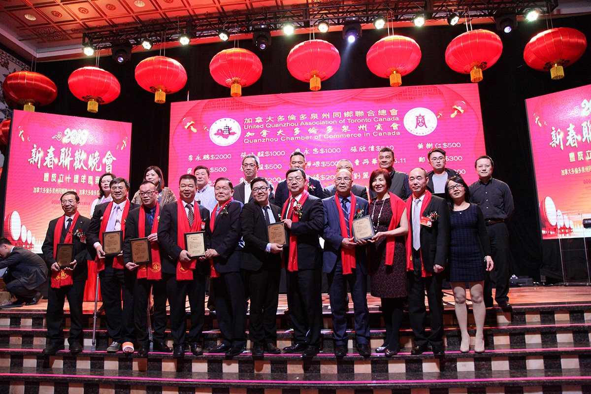 2019年3月3号(星期日)晚,加拿大多伦多泉州同乡联合总会与加拿大多伦多泉州商会于烈治文山市钓鱼台国宴举办2019年新春联欢晚会暨成立十周年庆典,现场宾客云集、盛况空前。当天虽然下着大雪,但无阻众人热情,共有来自政、商、侨各界嘉宾及泉州乡亲逾千人出席参加了活动。