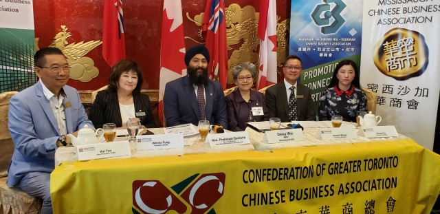 大多市华商总会于6月25日星期二与安省小企业及精简程序事务厅长 Hon. Prabmeet Sarkaria 和省议员韦佩芳 (Daisy Wai) 举行圆桌会议, 与本地华商会面,听取华商对如何省却繁文缛节, 简化程序 , 以减低营商成本的意见, 事务厅长并详细解释如何增加及拓展营商机会, 减省官僚程序, 精简发牌手续 , 为工商界拆墙松绑 , 改善营商环境和更佳服务模式提供意见和支援,以期提高生产力,发展具创意及高增值的新工业等。出席是次活动的商界人士约30人, 并踊跃发表意见及作出各项相关提问。