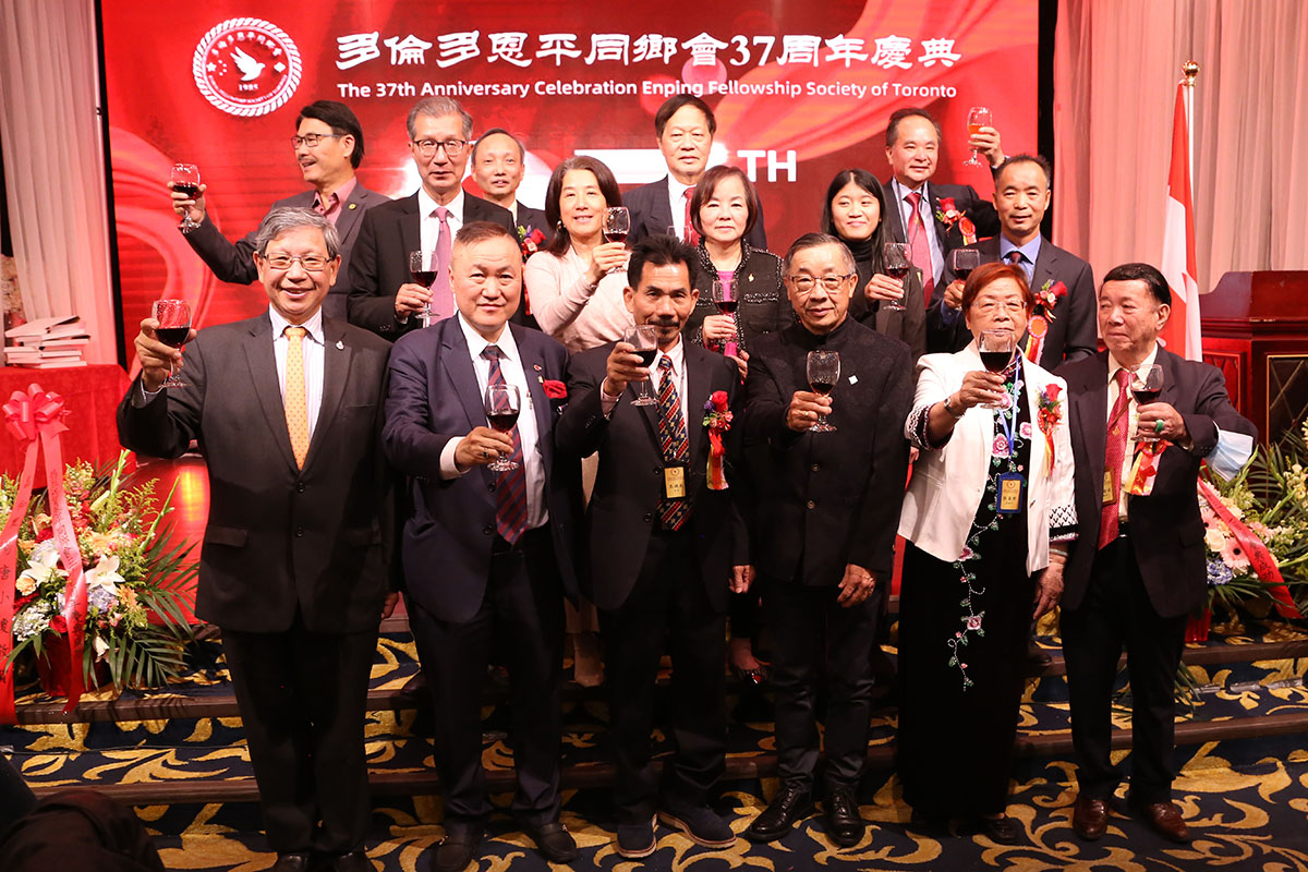 热烈庆祝多伦多恩平同乡会举行史无前例的建会37年庆典活动,10月21日在士嘉堡豪门宴大酒楼隆重举行,参加嘉宾有来自世界各地,海內外的恩平侨团侨胞共有140多人,连同本地加拿大三级政府政要,社团,协会等人数接近800多人参加,规模庞大。举行活动的目的是与恳亲联谊,传递乡音乡情,爱国爱乡,团结一致。介绍和展示多伦多恩平同乡会近两年的发展情况,和发展蓝图。将来更好地为海外侨胞服务,为家乡建设作出贡献。当天晚宴出席嘉宾有:联邦国会议员陈圣源,前安省对外贸易厅长、约克地区议员候选人陈国治,前万锦市经济文化委员会主席、约克地区议员候选人何胡景,和争取连任的万锦第六选区市议员候选人杨绮清,前列治文山经贸委员会主席、约克地区议员候选人陈志辉先生以及多伦多市市长候选人陆炳雄先生、万锦第二选区市议员候选人刘兆果等。