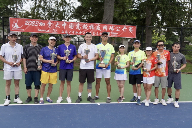 由上海大学加拿大校友会主办的「2023加拿大中国高校校友网球公开赛」于8月19-20日一连两天在Appleby College举行。逾百多位各校参赛选手经过激烈角逐8月20日举行颁奖仪式后圆满落幕。