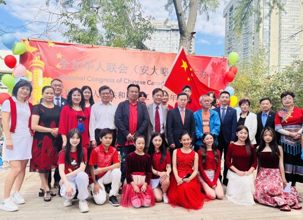 中国驻多伦多总领事馆副总领事程洪波在致辞中说:“中国现在已经飞速发展,大家也看到中国现在的繁荣富强,无论是科技、高铁等等都走在世界前列,我们为自己是中国人感到骄傲,今天在这里共同庆祝祖国的生日,希望中国更强大、更繁荣。”