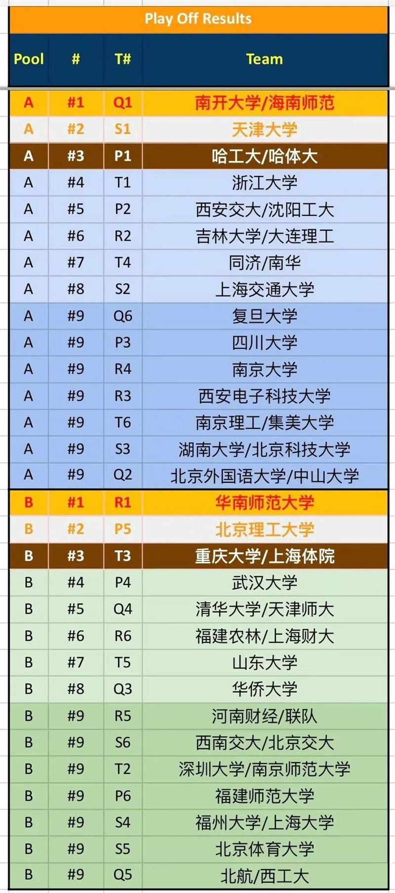 最终,南开大学和海南师范联队摘得A组桂冠,天津大学获得亚军,哈尔滨工业大学和哈尔滨体育大学联队获得季军。B组的冠军、亚军和季军分别由华南师范队,北京理工大学队和重庆大学和上海体院联队斩获。