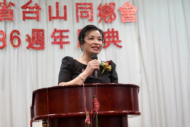 晚会在彭淑华领唱、30位老人合唱的国歌声中开始,首先由会长彭绮华致辞,她在致辞中表示;”我们在这里隆重举行加拿大安省台山同乡成立36周年的盛大庆典。我谨代表本会全体同仁向大家致词。我以最热烈的欢迎和衷心感谢今天到场的所有人。台山位于珠江三角洲西南部,地处粤港澳大湾区和海上丝绸之路重要点,台山是广府人出洋第一港,台山属于广府文化带,是广府文化发祥地之一,台山的本土传统文化就是广府文化,台山拥有着悠久的广府文化传统。台山市素有“全国第一侨乡”、“内外两个台山”之美誉,有160多万台山籍乡亲旅居海外及港澳等90多个国家和地区。台山市是著名的“排球之乡”、“广东音乐之乡”、“中国曲艺之乡”、“飘色艺术之乡”,还是全国文明城市提名城市、国家森林城市。这些都是我们台山人的骄傲。安省台山同乡会于1988年成立以来,经过了风风雨雨和各种荣耀的洗礼。今天我们迎来了欢天喜地的重大庆典,群狮起舞,歌舞满堂,宴会佳肴,齐齐举杯的欢乐祥年,在新一届领导班子领导下,理事们和会员们的同心协力,勤奋工作中,本会会员队伍人数不断壮大,本会经常举办乡亲们喜爱的,有利于身体健康、正能量,社会影响和好评的等有益活动。如广场舞,太极拳,麻雀比赛,歌咏表演等文体活动,组织引导中老年乡亲做好身体保健和安全幸福过好晚年生活。理事们积极宣传的中华传统文化,每逢节日同乡会都会组织会员和乡亲参加活动。以春节茶话会敬老爱幼,清明时节拜祭纪念先侨前辈,节日组织乡亲朋友到公园进行烧烤野餐和文艺表演,舞狮子表演,每次的户外活动都非常热闹,今年参加的乡亲们多达五,六百人,大家吃得好,玩得好,得益多,人人赞好。在关心孝顺老人和培训教育学生上,本会也做了大量的工作,真正得到了政府部门在金钱上的资助和厚爱!长者对我们都非常感恩! 回顾安省台山同乡会36年的历程,所有的创会元老及历届领导班子,对本会作出了无所计较的付出和奉献,大家有目共睹,值得我们学习和敬重。 乡亲们,朋友们,我们新一届理事会成员,大家团结一心,接起重担,明确方向,勇于开拓创新,全心全意为本会和乡亲服务。我们的服务宗旨是为乡亲们遮风挡雨,排忧解难,为乡亲们谋福利,联络家乡,关心家乡建设,让本会成为乡亲们一个温暖的大家庭,最后祝大家前途似锦,再创辉煌! 祝大家身体健康,家庭幸福,万事如意!”