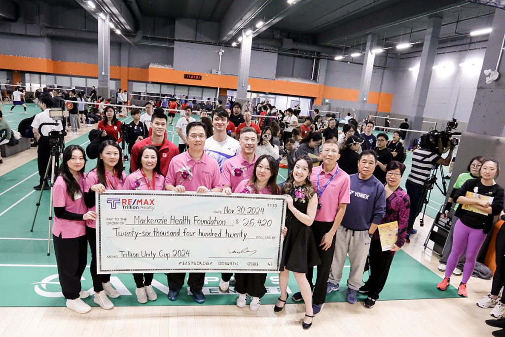 由RE/MAX Trillion Realty主办,万锦市、烈治文山市、旺市华商会(MRVCBA)协办的首届滶㻽杯慈善羽毛球比赛「Trillion Unity Cup」,已于11月30日在万锦市的CAN Sports Center圆满结束,本次活动吸引了超过300名羽毛球爱好者参加,其中包括加拿大国家队的顶尖球员与教练,共筹集善款$26,420,用于支持Mackenzie Health Foundation的心血管健康研究与治疗。